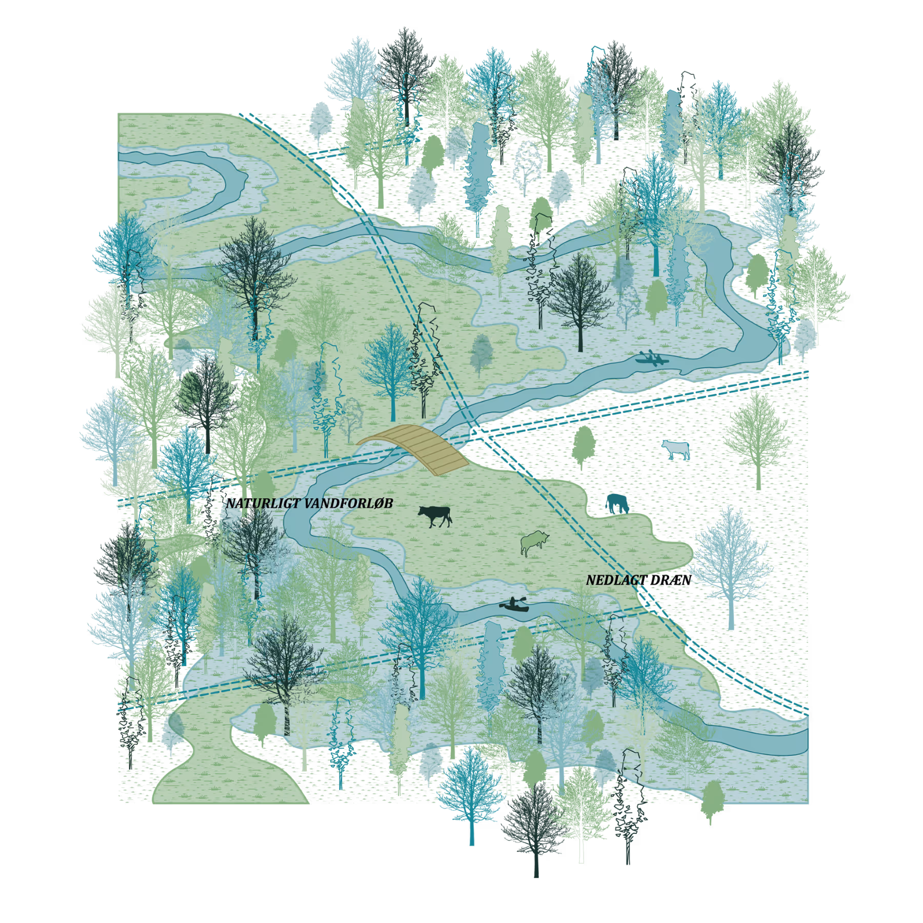 In collaboration with the think tank CONCITO, Schønherr has developed a scenario model that translates the analysis from the Future Land-Use project into a specific proposal for a transformed landscape. The scenario model utilises planning tools of our studio – tailored to municipalities, organisations, and clients who wish to work strategically with sustainable development and the landscapes of the future.
