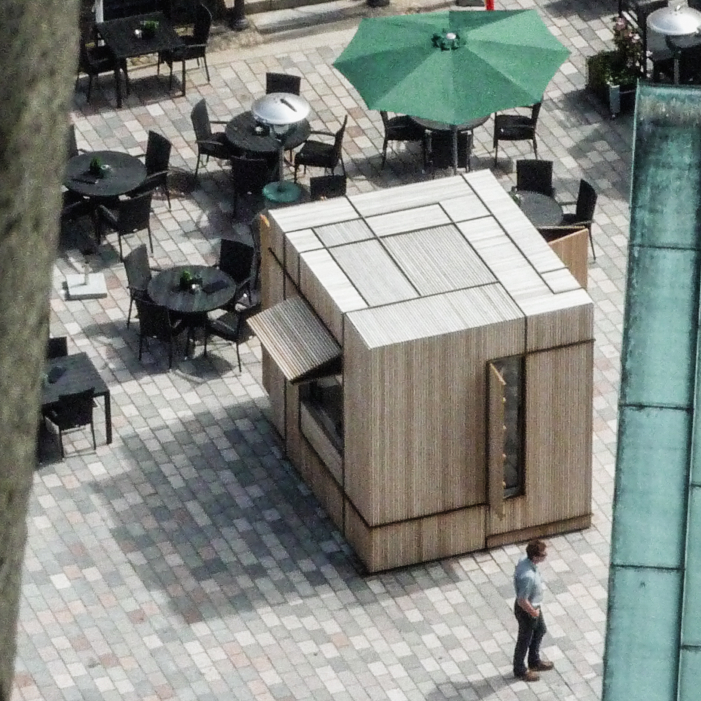 Groups of trees are placed on raised plinths, which both protect the plantings and serve as seating furniture. The placement of the plinths guides pedestrian and bicycle traffic along former street routes, without breaking the overall coherence of the square.