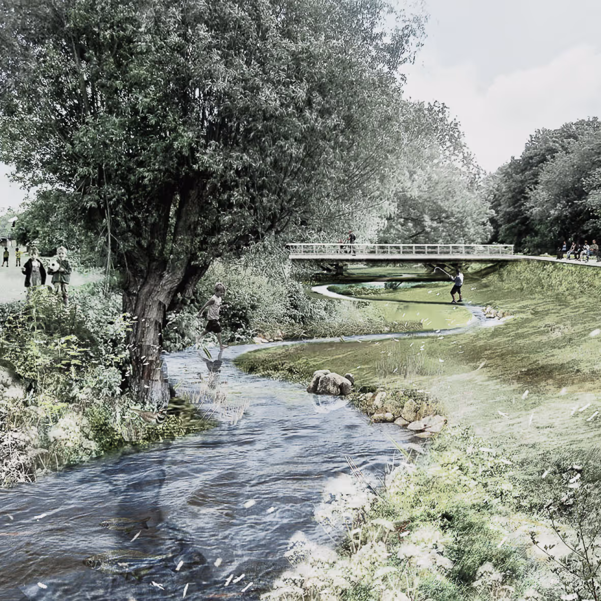 Schønherr skaber helhedsorienteret klimaplanlægning, hvor havvand, regnvand og grundvand integreres i lokale og regionale strategier. I samarbejde med ingeniører udvikler vi helhedsplaner, bufferzoner og naturlige forsinkelsesstræk, koblet til kommune-, spildevands-og klimatilpasningsplaner.