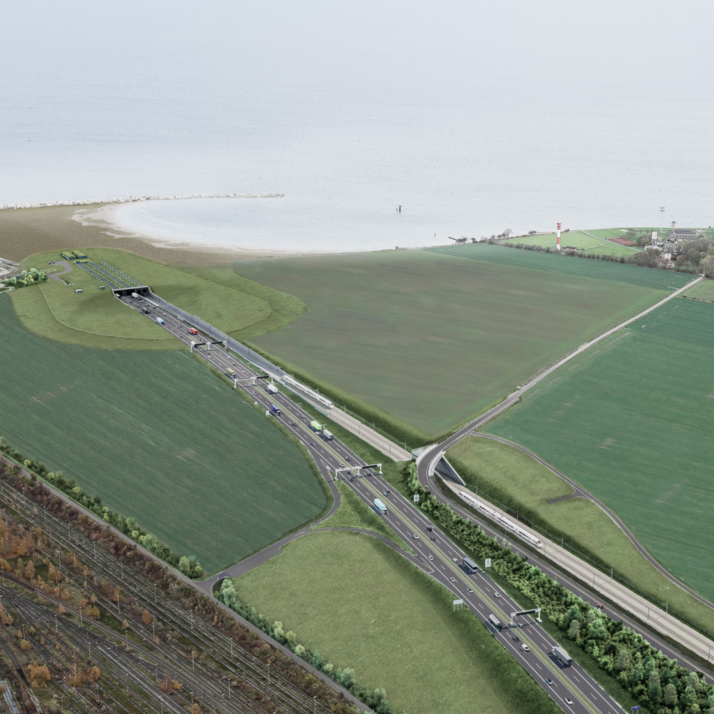 Selv meget store tekniske anlæg indpasses skånsomt i by og landskab med bearbejdning af beplantning, skråninger, støttemure og portaler.